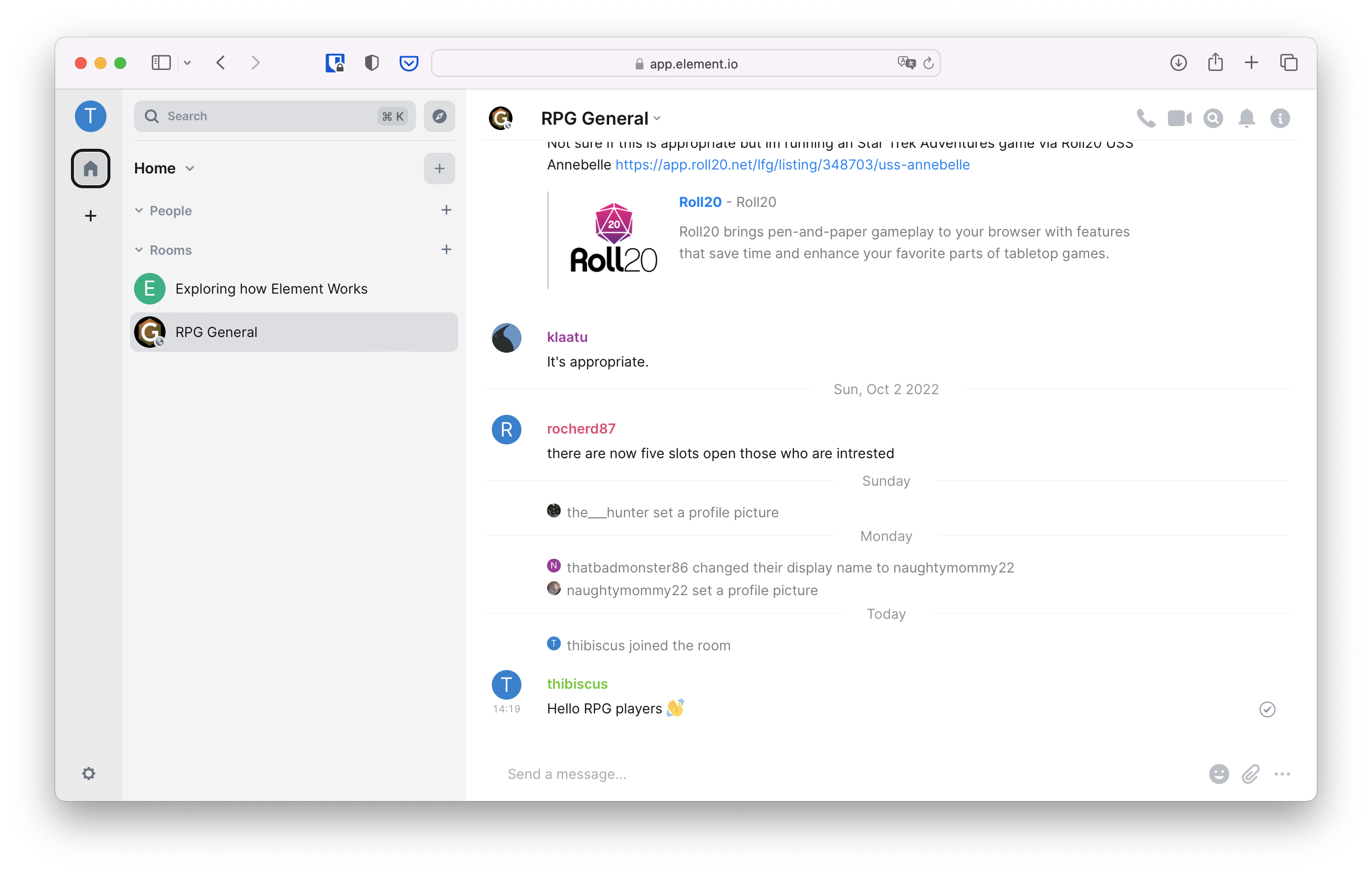 Since this documentation started with Element, let’s carry on with it. You will be able to seamlessly change to another client when you’re more used to Matrix.